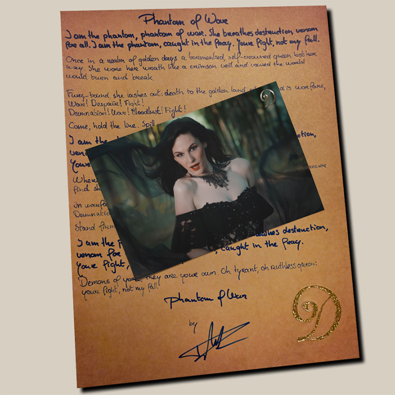 All lyrics will be written & signed by Dianne van Giersbergen personally, on vintage writing paper. The lyric will also include the embossed, gold glitter-filled, DIANNE logo.