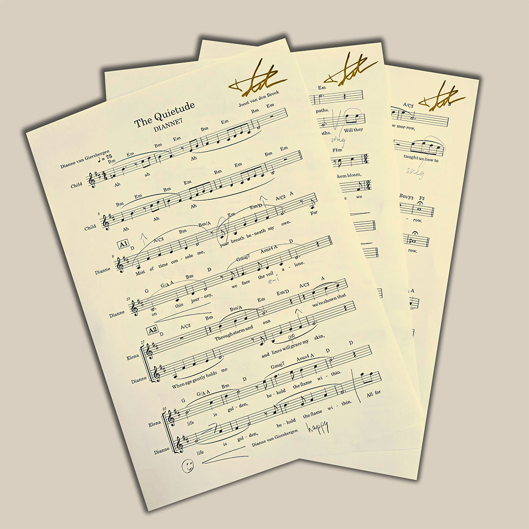 Here it is! The vocal, cello & violin score of “The Quietude” with which you can read along while listening to the song or study the song yourself.